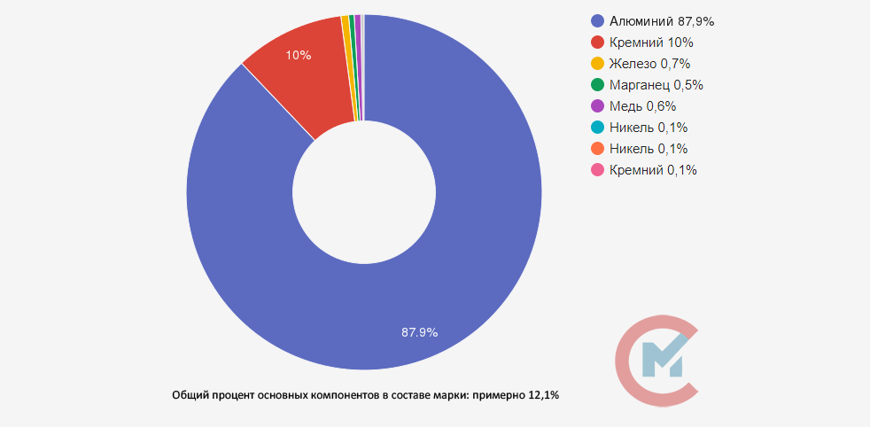 Буква «А» в маркировке сплава указывает на основной компонент — алюминий. «Л» означает, что сплав литейный, обладает хорошей жидко-текучестью, имеет сравнительно не большую усадку и предназначен в основном для фасонного литья. «2» — порядковый номер.